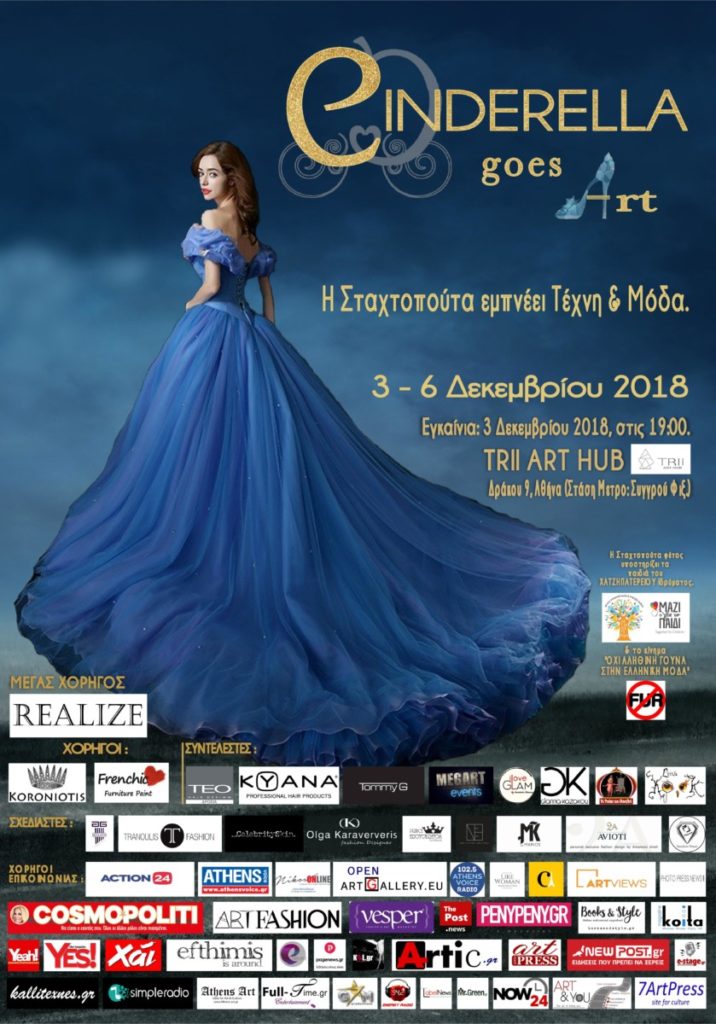 Ένα γυάλινο γοβάκι θα γίνει η αιτία ώστε η Σταχτοπούτα να βρει τον Πρίγκιπά της στο εικαστικό δρώμενο Τέχνης & Μόδας ‘’CINDERELLA GOES ART’’ !Σε έναν κόσμο παραμυθένιο θα ταξιδέψουν όσοι παραβρεθούν στην καλλιτεχνική εκδήλωση με θέμα το παραμύθι των αδελφών Γκρίμ ‘’Σταχτοπούτα’’ στις 3-4-5-6 Δεκεμβρίου 2018. Το artisticproject‘’CinderellagoesArt’’ υποστηρίζει τα παιδιά με πολυαναπηρίατου Χατζηπατέρειου Ιδρύματος. Στον νεοκλασικό πολυτελή χώρο του TriiArtHub στην Αθήνα, θα πραγματοποιηθεί το δρώμενο που θα περιλαμβάνει εικαστική έκθεση, επιδείξεις γνωστών σχεδιαστών μόδας με βραδινά ενδύματα, προσφορά δώρων για τα παιδιά με ειδικές ανάγκες, κλασσικό χορό, cocktailparty& εκπλήξεις !