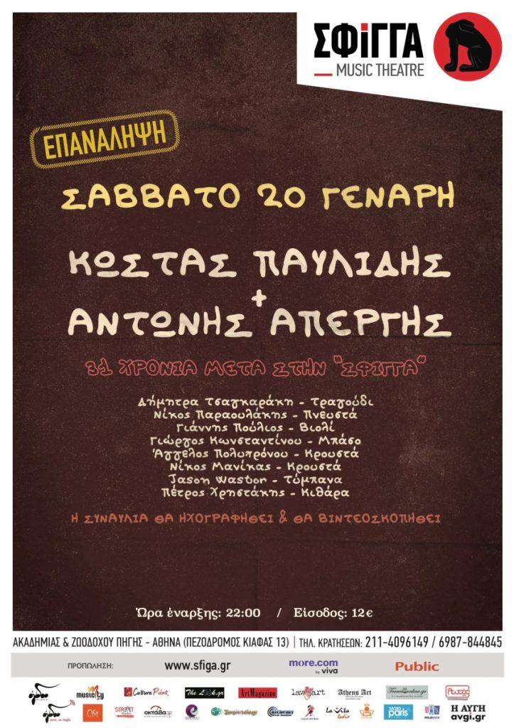 Έτσι το νέο ραντεβού του Κώστα Παυλίδη και του Αντώνη Απέργη –κατόπιν λαϊκής απαίτησης- δίνεται για το Σάββατο 20 Ιανουαρίου