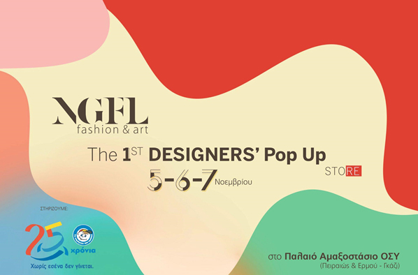 Σε ένα διαδραστικό τριήμερο με πολλές εκδηλώσεις και κάτω από την ομπρέλα του NGFL, οι σχεδιαστές κοσμημάτων και ενδυμάτων καθώς και οι εικαστικοί, συμμετέχουν στο 1ο Designers’ Pop Up store, στο οποίο μέσα στις τρεις ημέρες που θα διαρκέσει θα παρουσιάσουν τις δημιουργίες τους στον κόσμο που λατρεύει τη Μόδα και την Τέχνη και περιμένει τόσο καιρό να δει και να απολαύσει καινούριες συλλογές!!