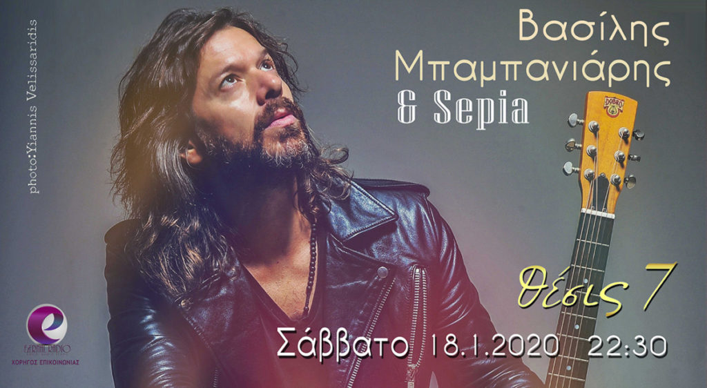 Ο Βασίλης Μπαμπανιάρης και οι Sepia το Σάββατο 18 Ιανουαρίου επιστρέφουν στο “Θέσις 7” για μια μοναδική εμφάνιση! Ένα μοναδικό τρίωρο, όπου το ροκ συναντά την παράδοση και οι ηλεκτρικές κιθάρες τα νταούλια και τα βιολιά, για να μας θυμίσουν τραγούδια που σημάδεψαν την ψυχή μας από τον Μάρκο και τον Ξυλούρη μέχρι τις Τρύπες και τους Jethro Tull, μαζί με τα τραγούδια του Βασίλη.