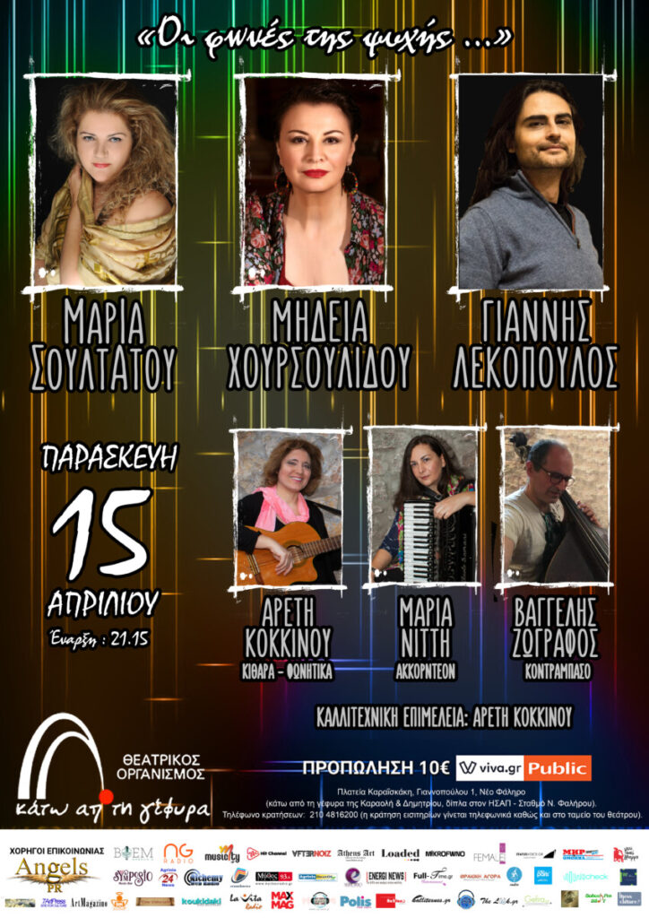 Οι τρείς καλλιτέχνες θα μας παρουσιάσουν ένα πρόγραμμα με αγαπημένα τραγούδια από την λαϊκή, έντεχνη και ethnic σκηνή καθώς και επιλογές από τη δισκογραφία τους. Μας υπόσχονται μια ιδιαίτερη βραδιά, ένα «ταξίδι» της ψυχής, που τόσο πολύ έχουμε ανάγκη αυτές τις δύσκολες μέρες .